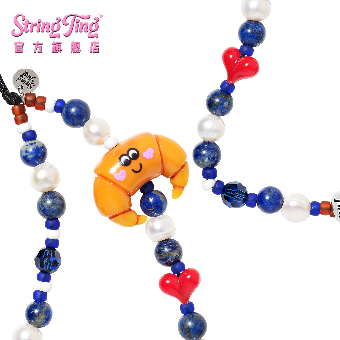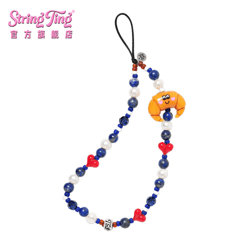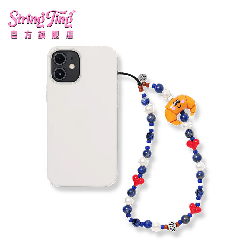 String Ting 牛角包先生手机链适用于iPhone便携挂链挂绳腕带配件串珠链条水晶宝石爱心ins个性时尚明星st