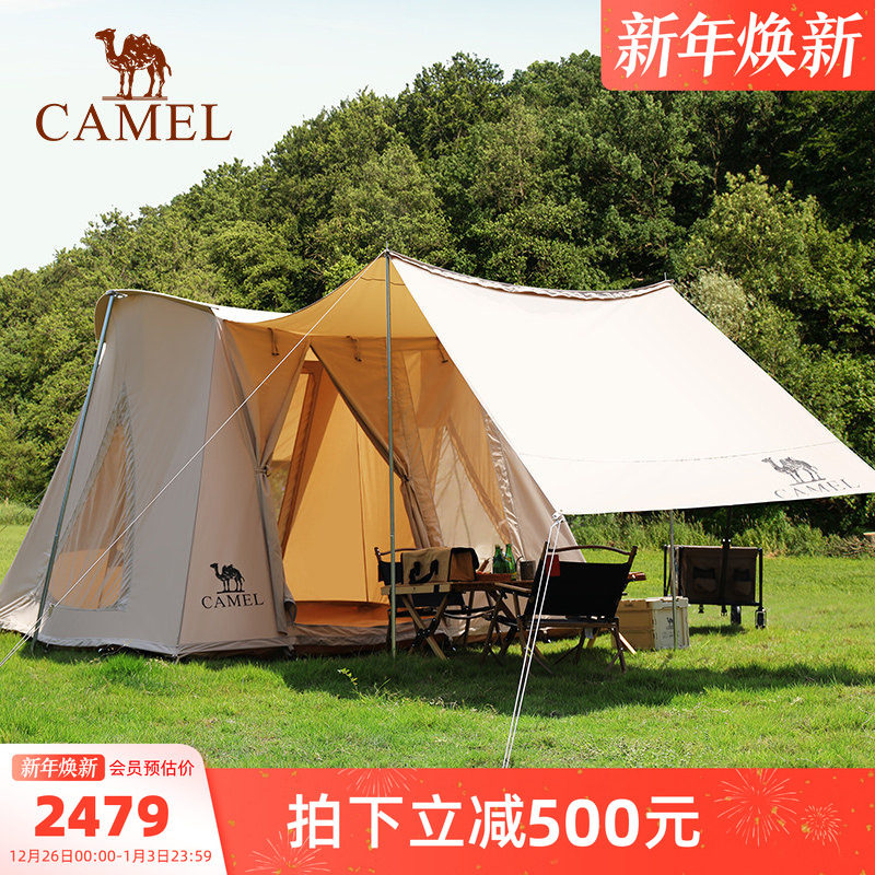 骆驼户外精致露营野外棉布加厚天幕折叠帐篷野营便携式大空间屋脊