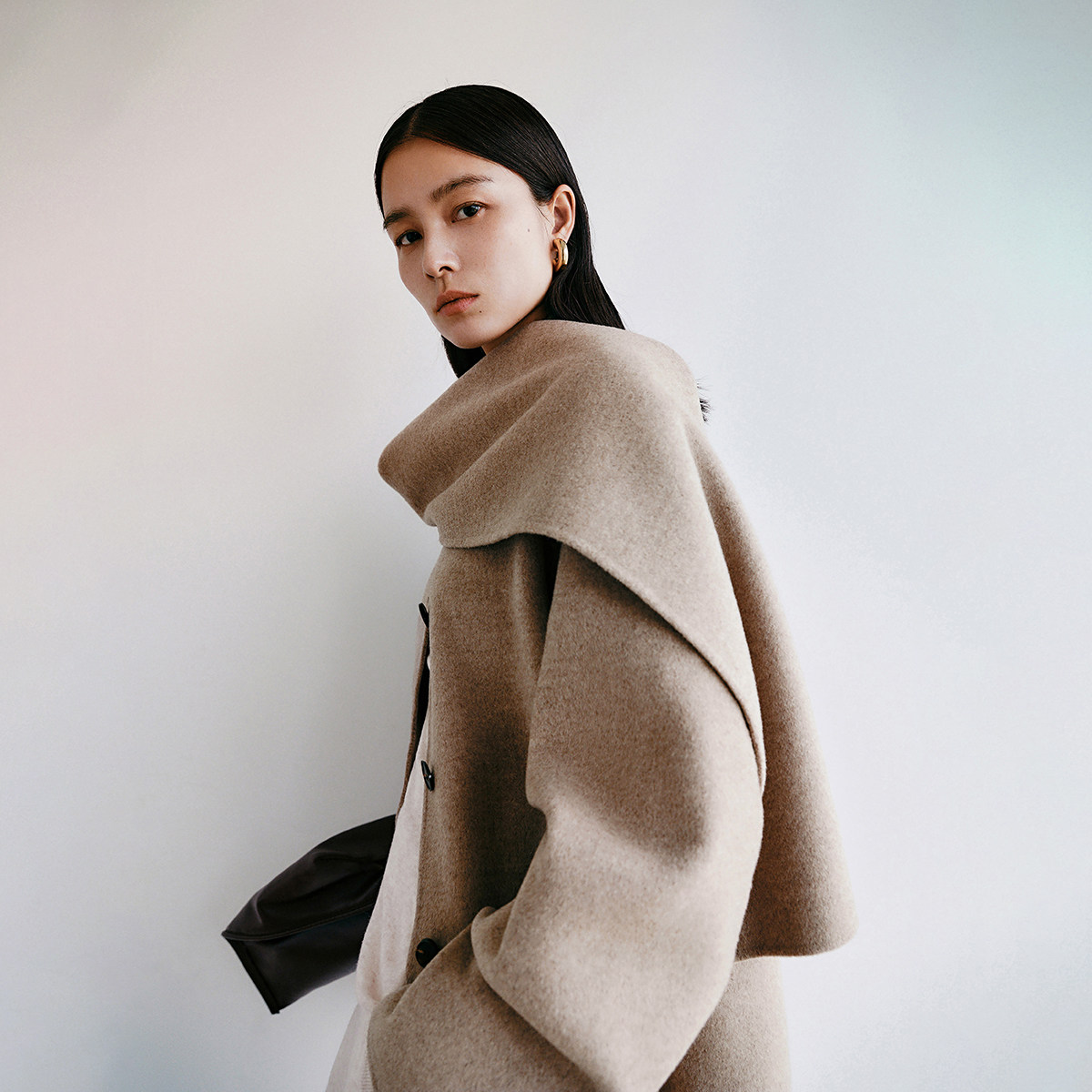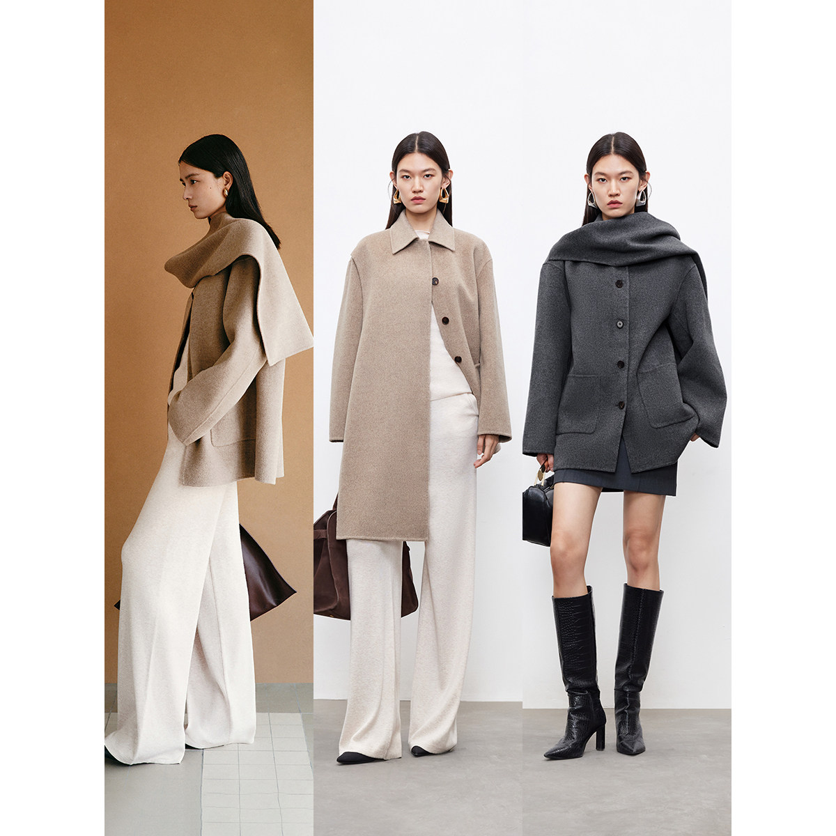 Vero Moda毛呢大衣2025秋季新款含绵羊毛山羊绒连身围巾32534T010