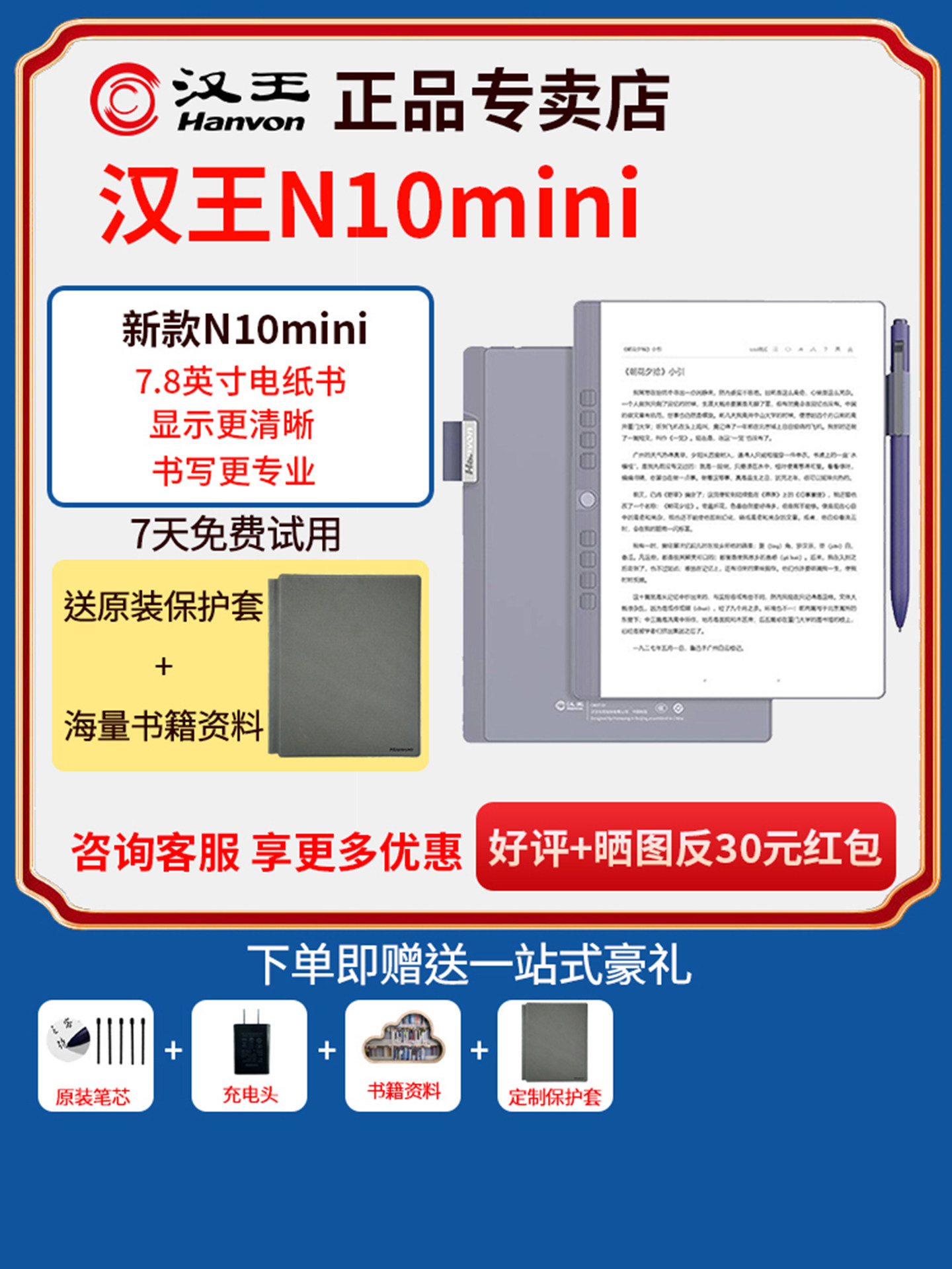 汉王电纸书N10mini7.8英寸电子书阅读器300ppi墨水屏阅览器笔记本手写智能产品型号N8Q232