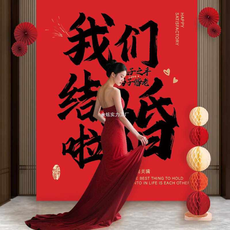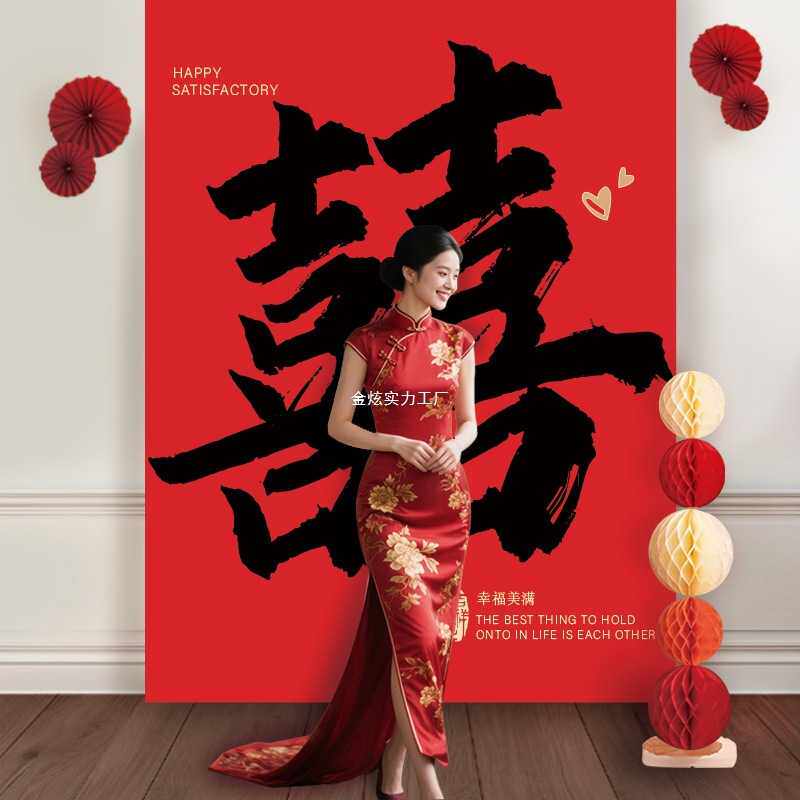 订婚结婚挂布氛围婚礼背景墙晨袍婚房感喜字拍照条幅卧室装饰超大