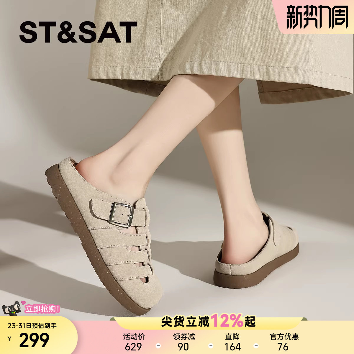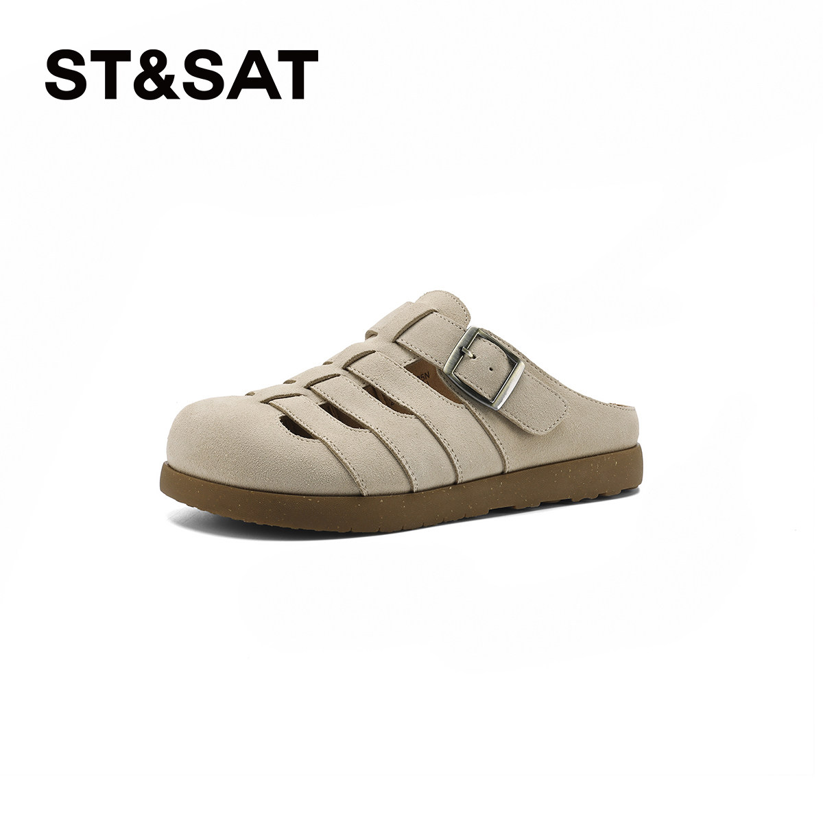 星期六真皮包头拖鞋女夏2025夏季新款软底罗马凉鞋穆勒鞋勃肯半拖