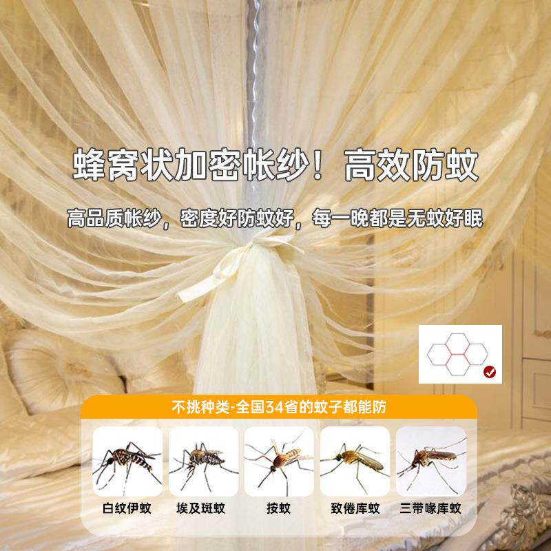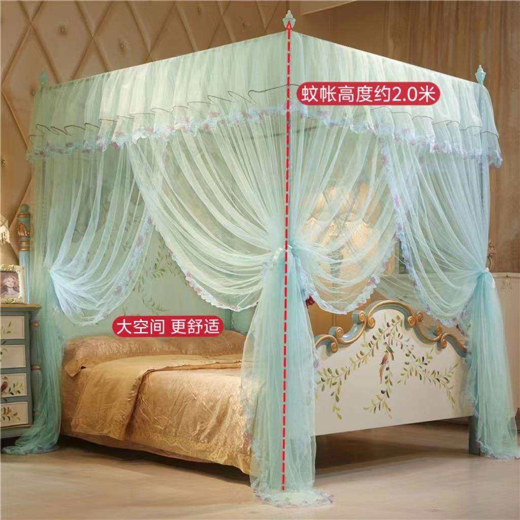 新款蚊帐家用卧室加密宫廷风落地三开门1.5m1.8米双人加粗支架2米
