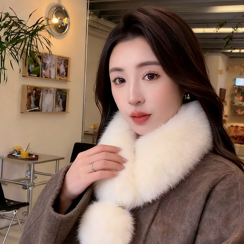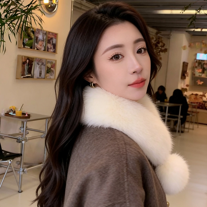 法式毛绒毛球围巾女高级感冬季配大衣皮草仿狐狸毛领保暖护颈围脖