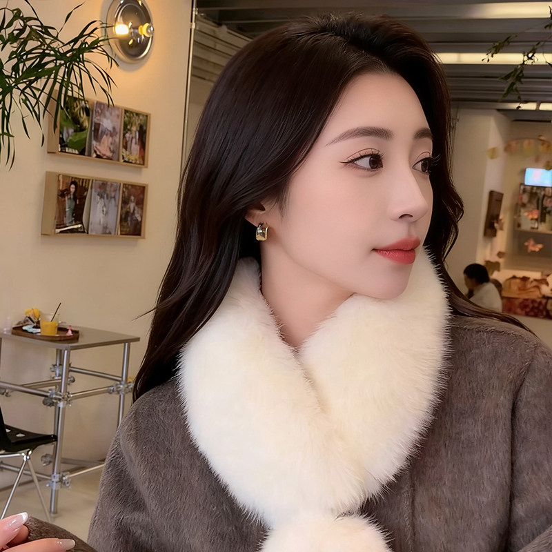 毛绒围巾女款2025新款冬韩系氛围感可爱百搭保暖交叉毛领围脖护颈