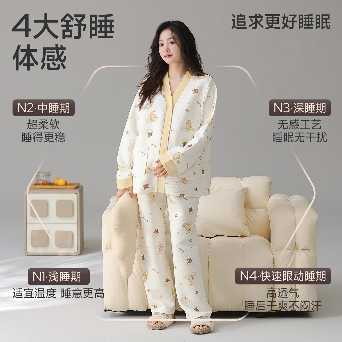 空气棉月子服秋冬季纯棉产后12月份全棉吸汗喂奶产妇哺乳孕妇睡衣