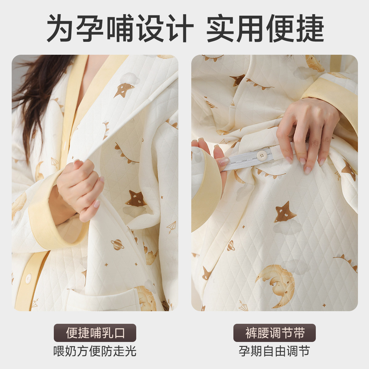 十月结晶兜兜鸭纯全棉吸汗月子服哺乳睡衣7A抗菌12月家居服女冬季