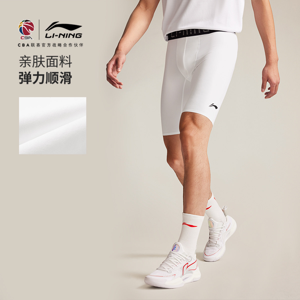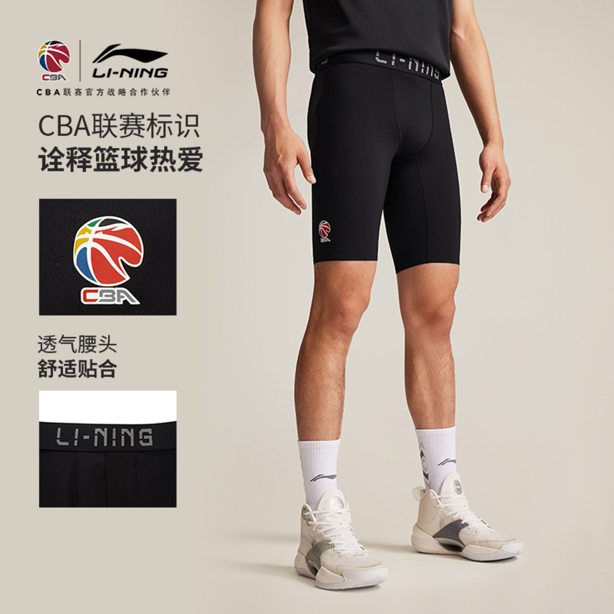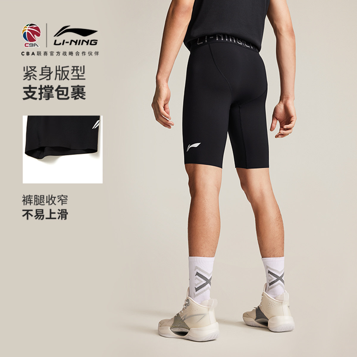 李宁CBA专业篮球系列健身裤男士2025新款夏季弹力紧身短裤运动裤