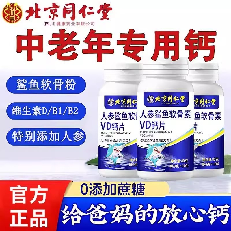 北京同仁堂人参鲨鱼软骨素VD钙片中老年人男性成年官方正品旗舰店