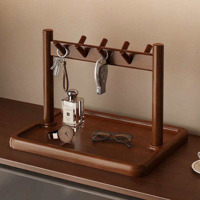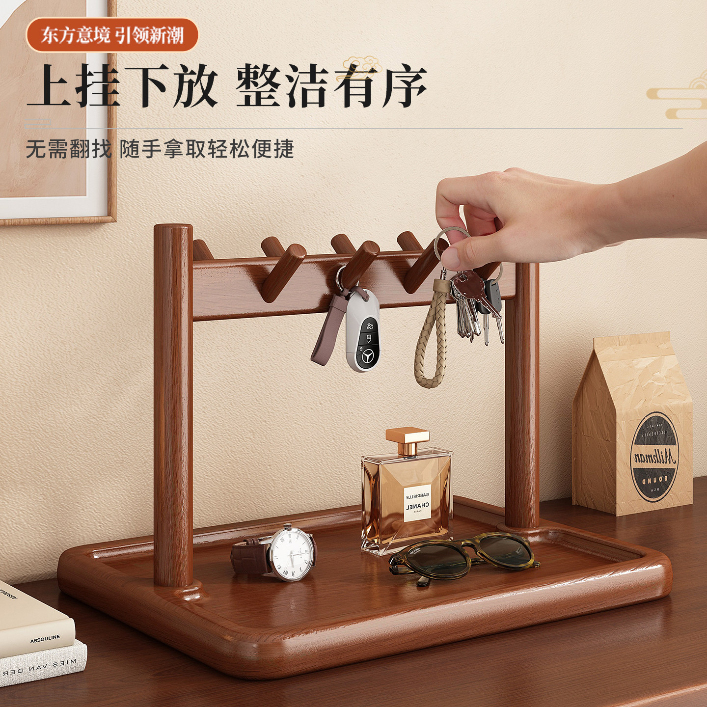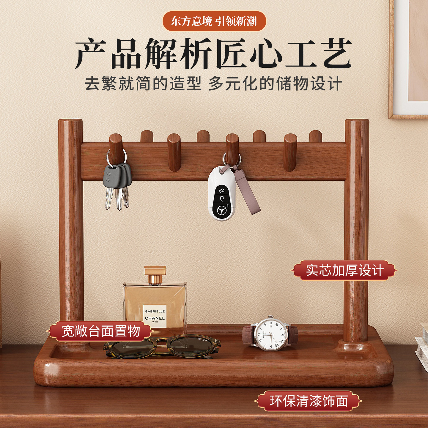 玄关钥匙置物架小型实木挂件架客厅整理神器桌面收纳架办公室厨房