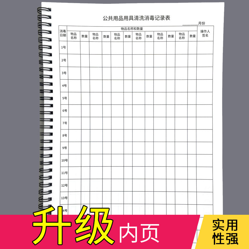 公共用品用具清洗消毒记录本美发店修脚店毛巾用品宾馆消毒登记本美容院用品消毒记录顾客公用物品消毒记录