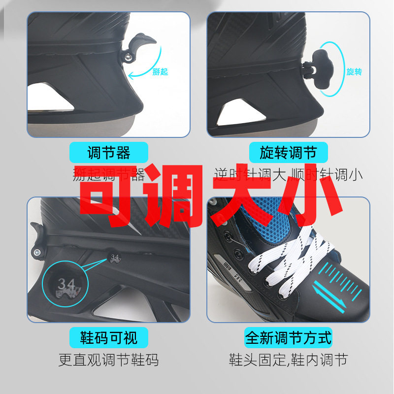 鲍尔可调冰球鞋儿童成人初学溜冰滑冰真冰冰刀鞋球刀调节冰鞋成人