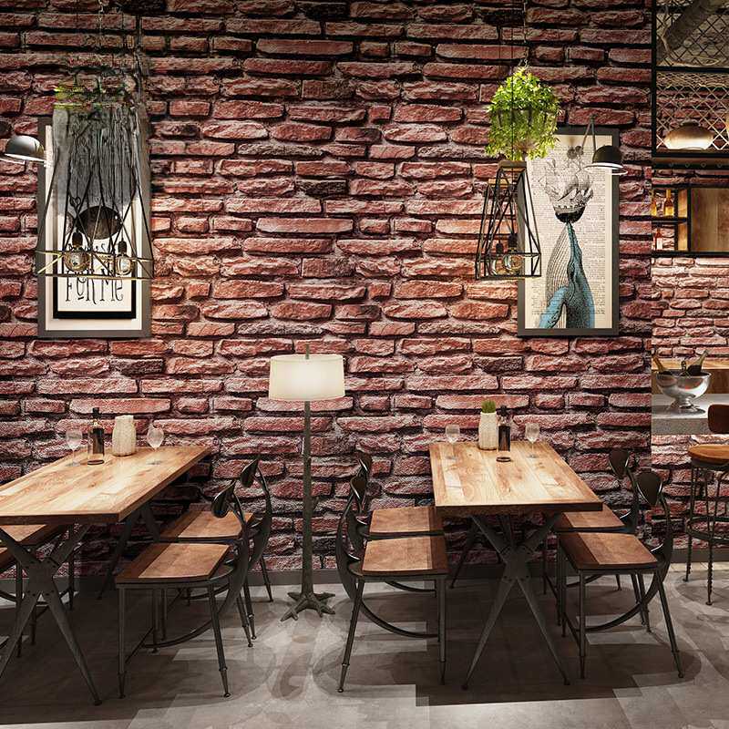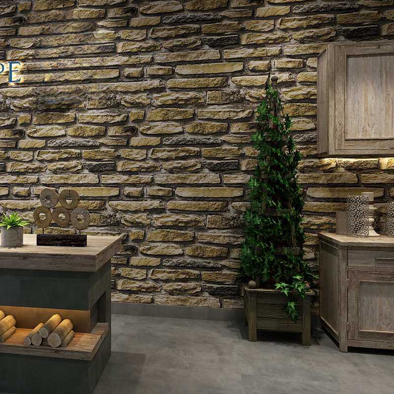 3D立体复古石头文化石壁纸非自粘仿古砖青砖砖纹砖块墙纸店铺装修