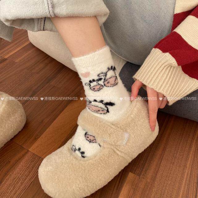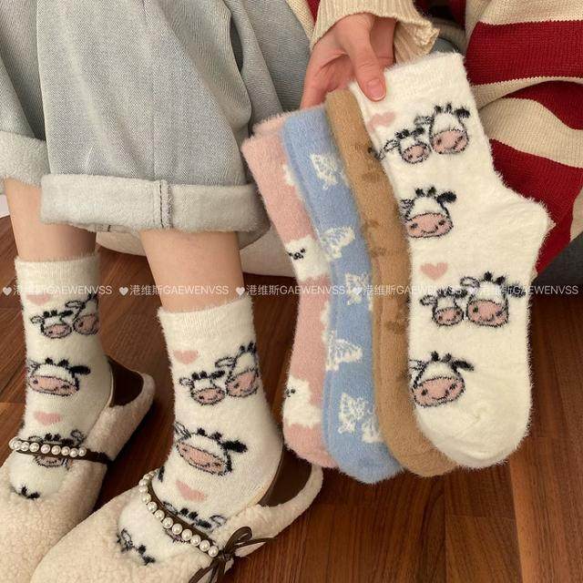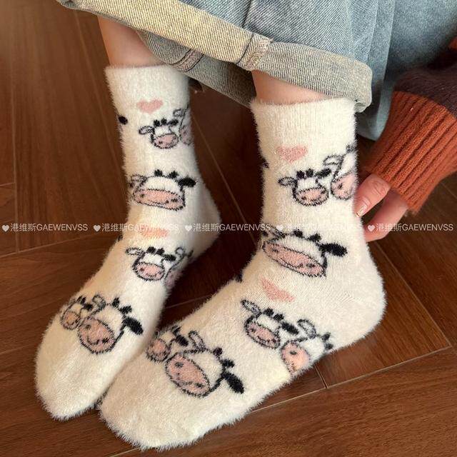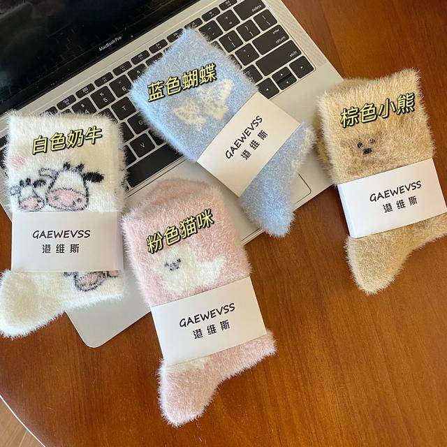 港维斯水貂绒袜子女中筒袜秋冬季加绒加厚保暖睡眠袜毛毛长袜