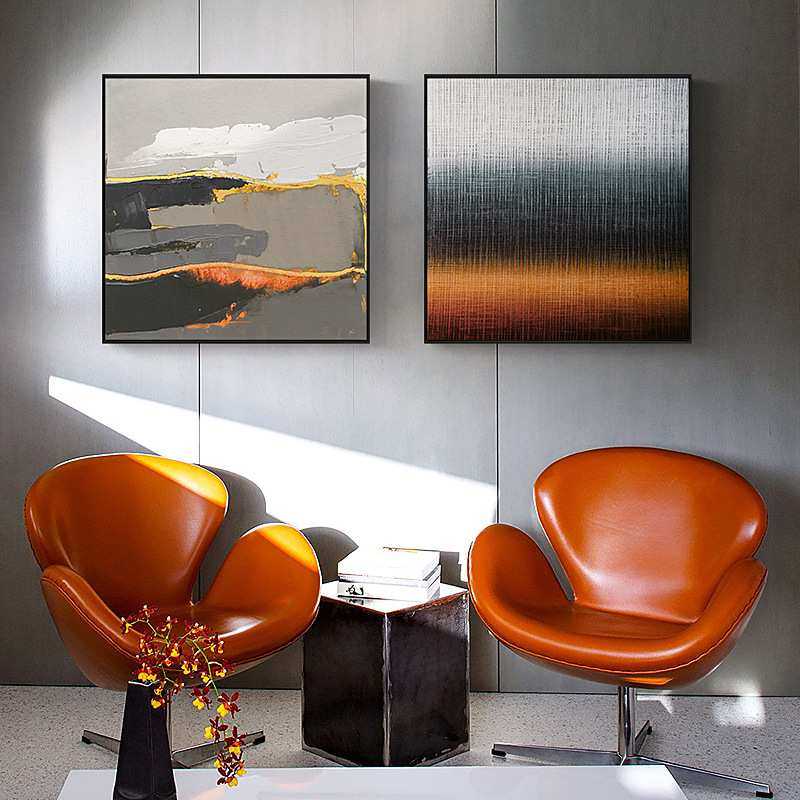 橙光乍现 现代简约橙色抽象装饰画客厅沙发挂画餐厅壁画北欧墙画