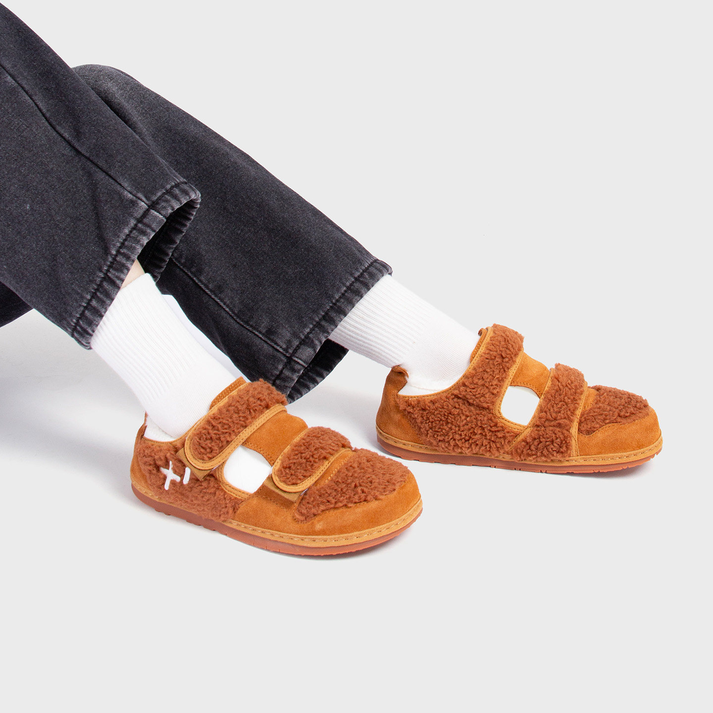 THEMULE丑萌鞋显脚小女魔术贴毛毛鞋外穿一脚蹬加绒棉鞋男豆豆鞋