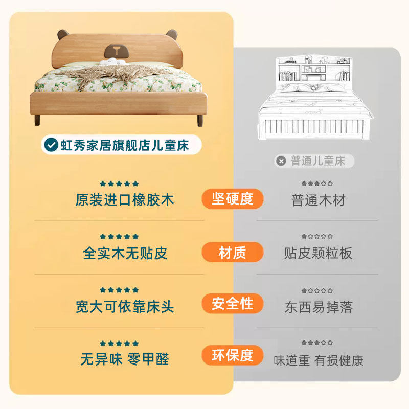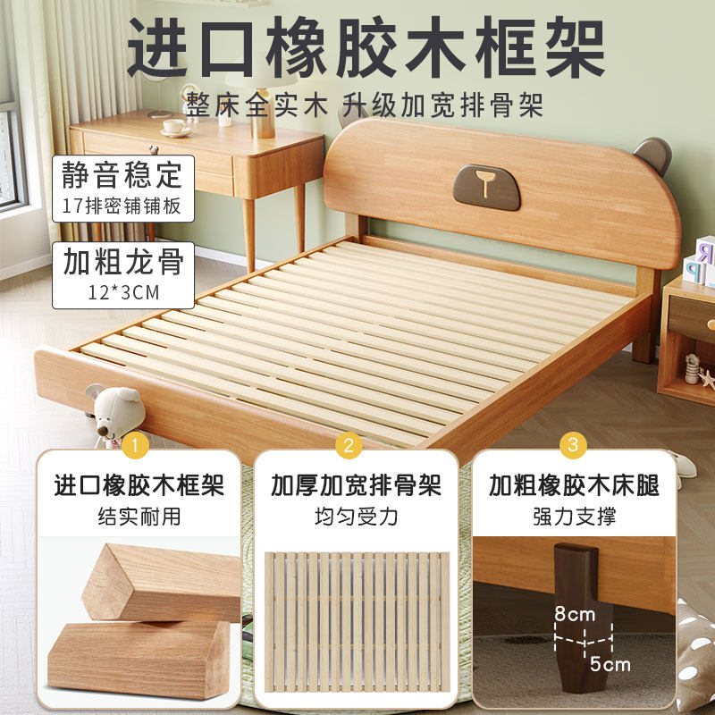 全实木儿童床男孩女孩小熊床公主床2025新爆款小户型儿童房单人床