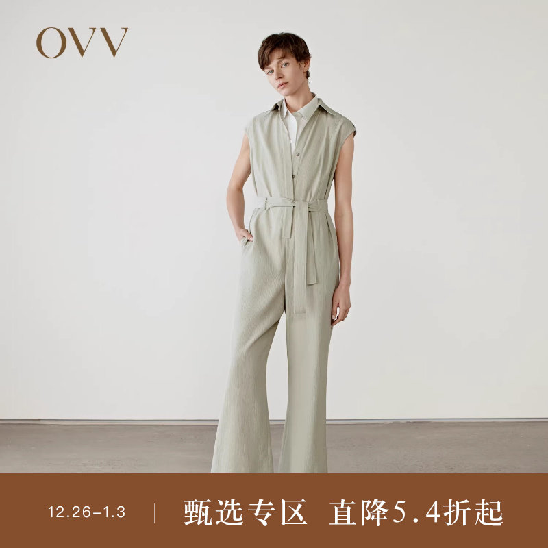 OVV2025春夏新款女装休闲舒适随附腰带简约大方连体裤
