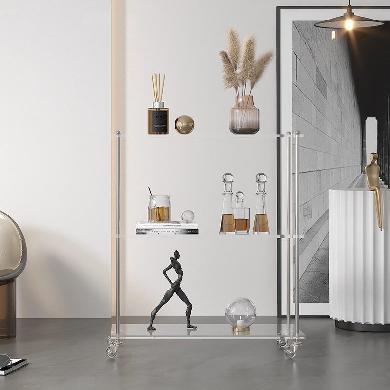 亚克力小推车客厅沙发边几可移动茶几花架家用展示架落地置物架窄