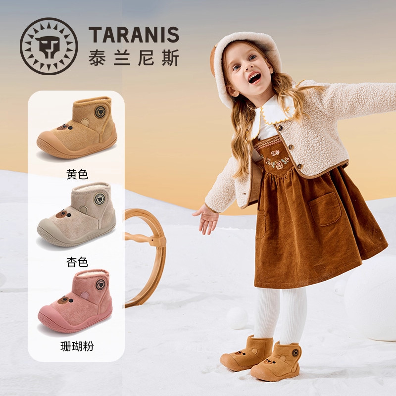泰兰尼斯雪地靴冬季男女童加绒靴子保暖防滑男女宝棉鞋学步靴子