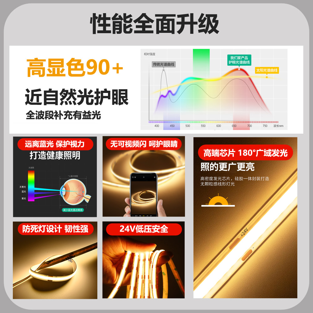 cob灯带自粘24v低压家装吊顶楼梯橱柜超亮led柔性软灯带线性灯条