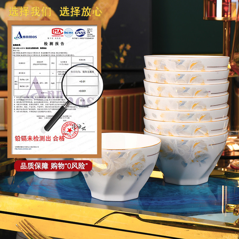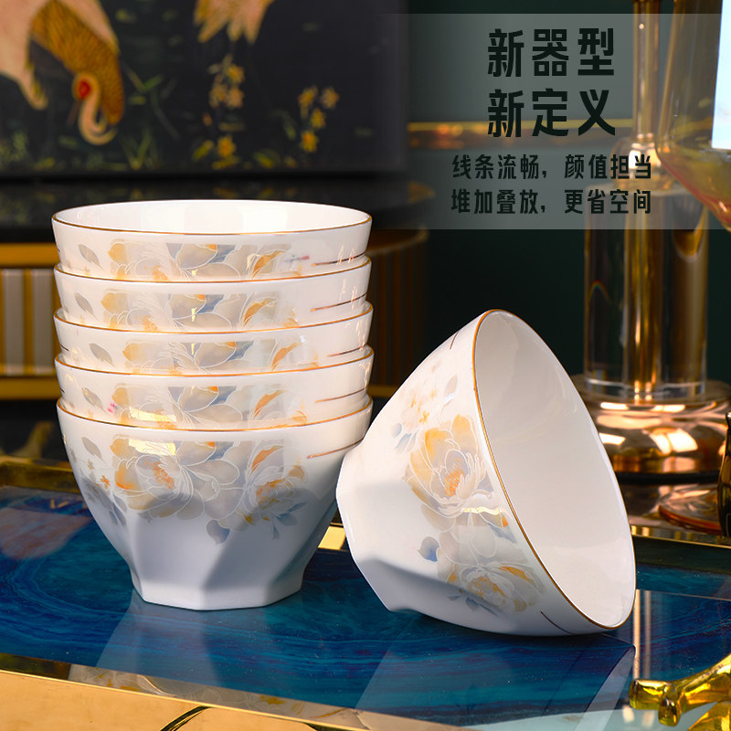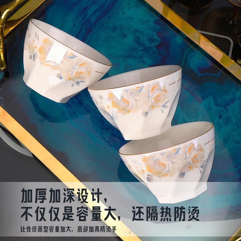 碗家用防烫斗笠碗2025新款景德镇描金边中式米饭碗陶瓷餐具吃饭碗