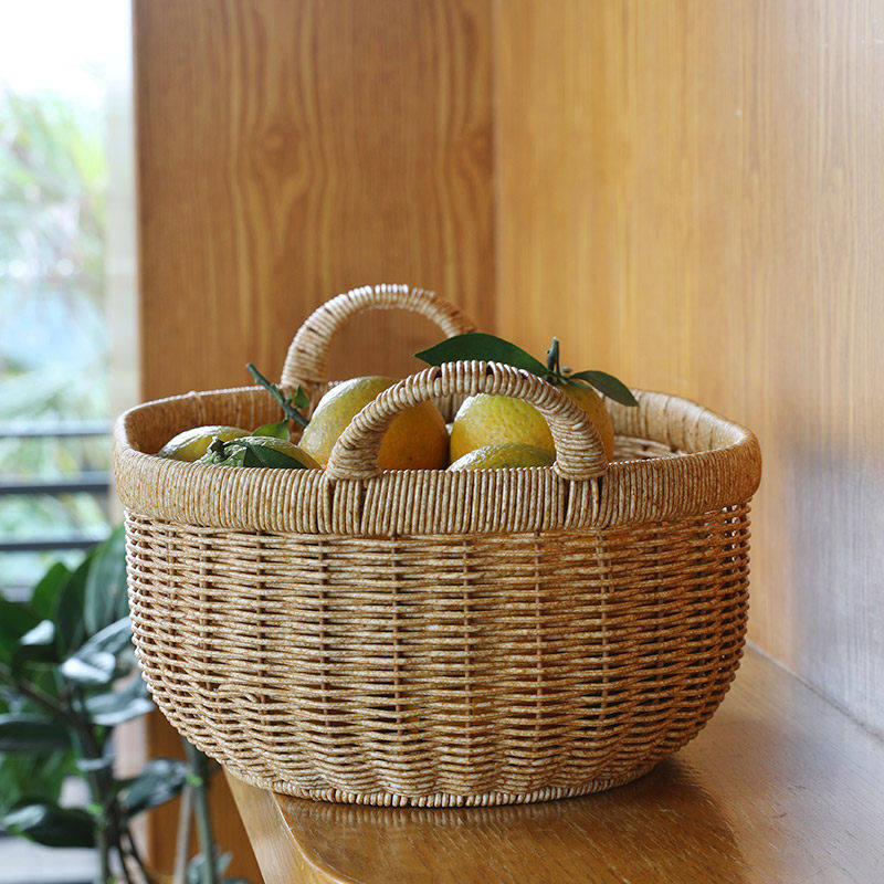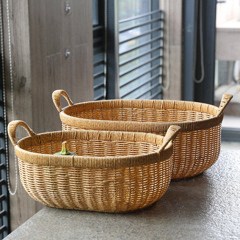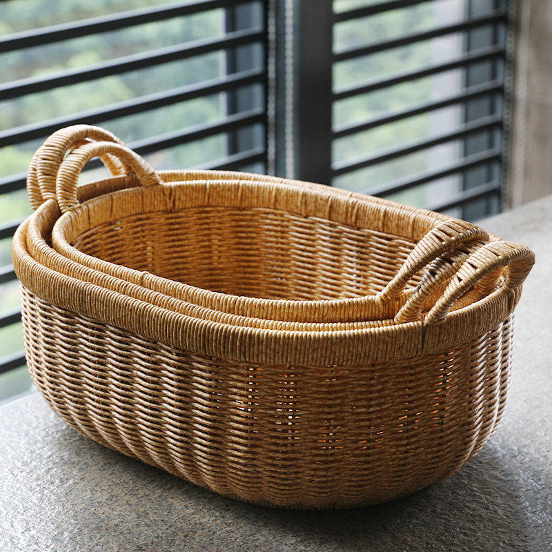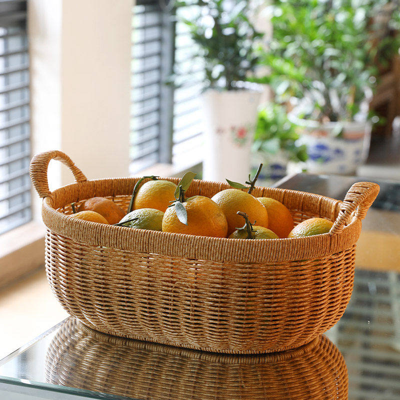 家好点水果篮客厅用仿藤编织家用杂物篮大号收纳筐厨房洗蔬果沥水