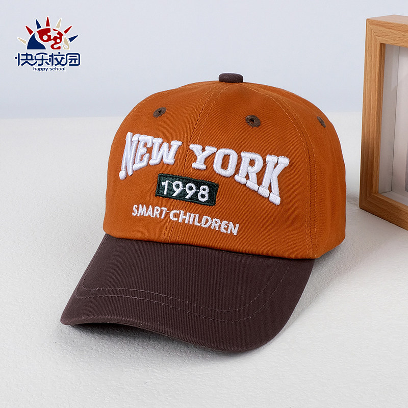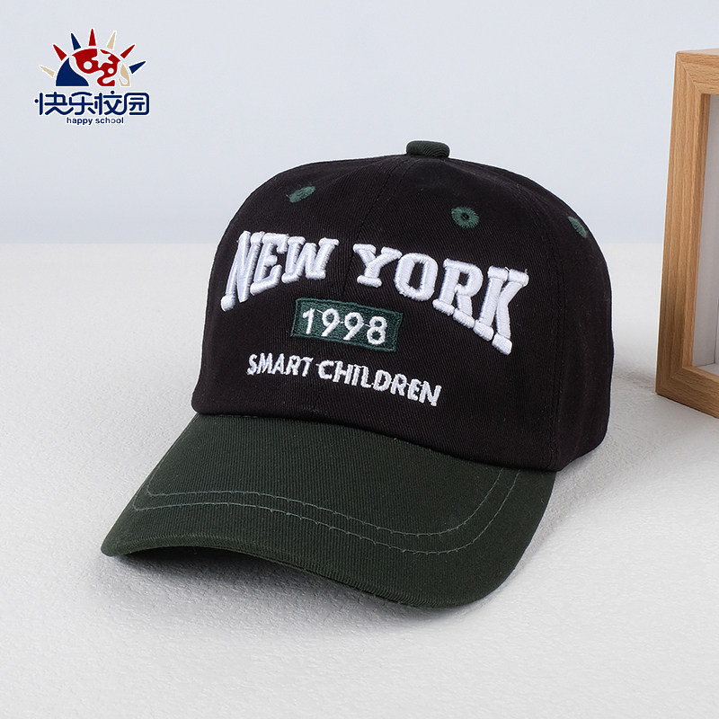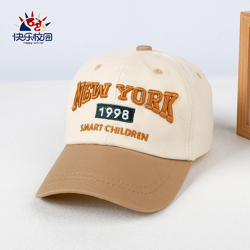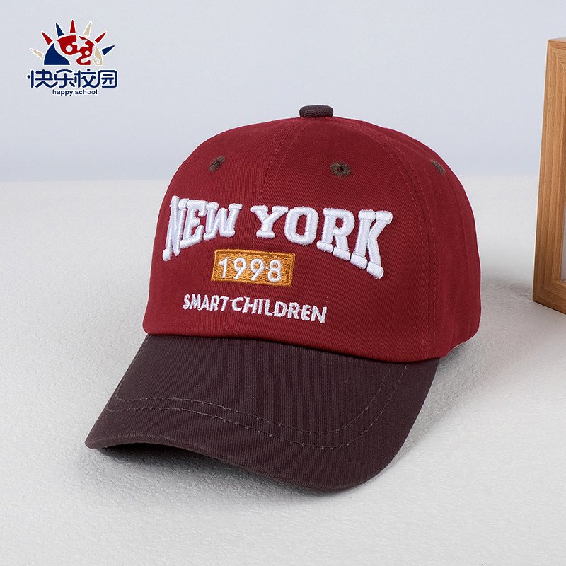 快乐校园儿童棒球帽复古遮太阳男女宝宝鸭舌帽防晒春秋季纯棉帽子