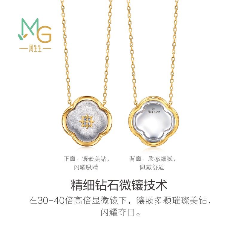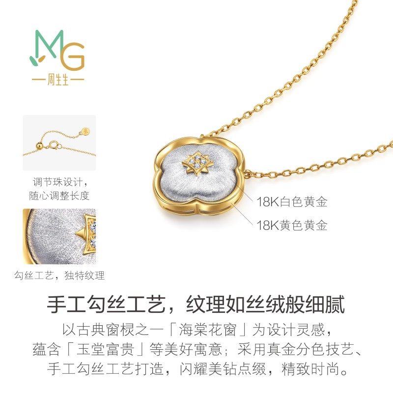 周生生18K黄白分色黄金流光系列海棠花窗钻石项链96095N