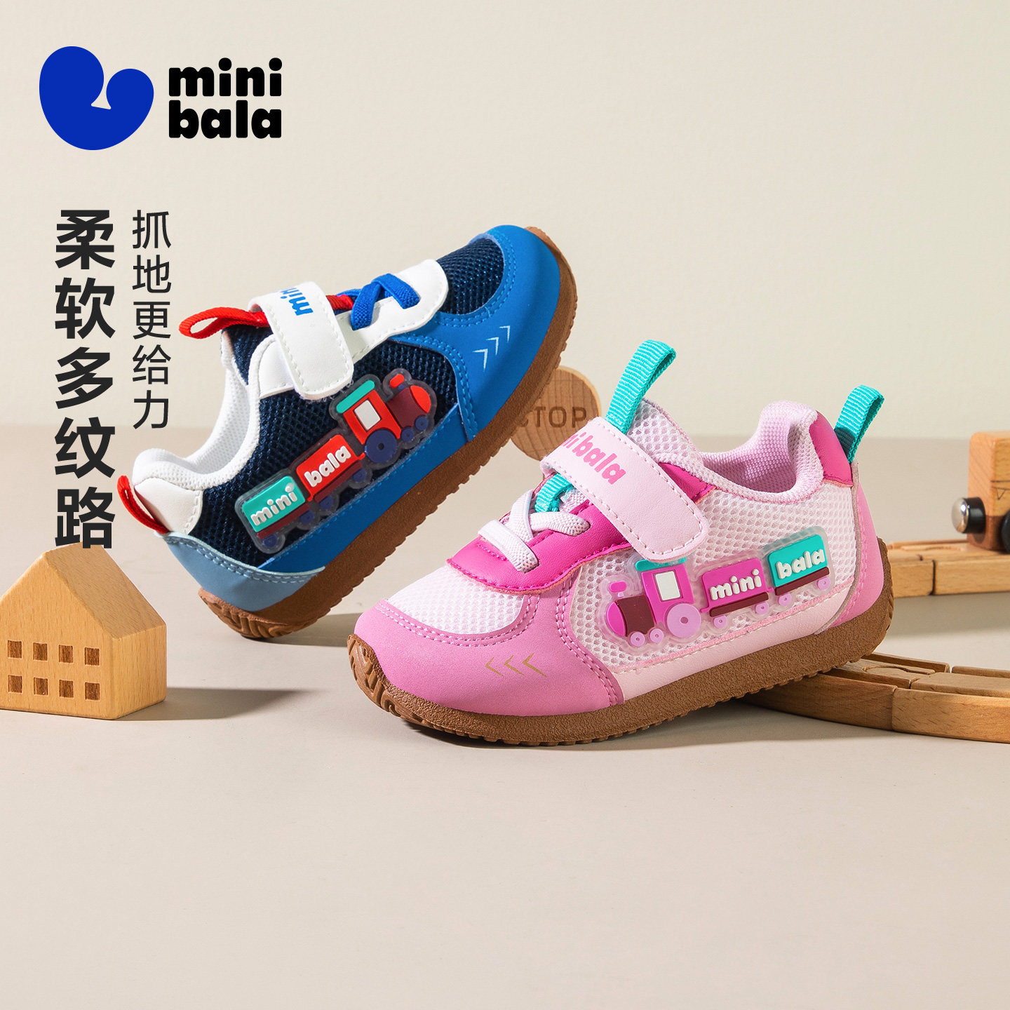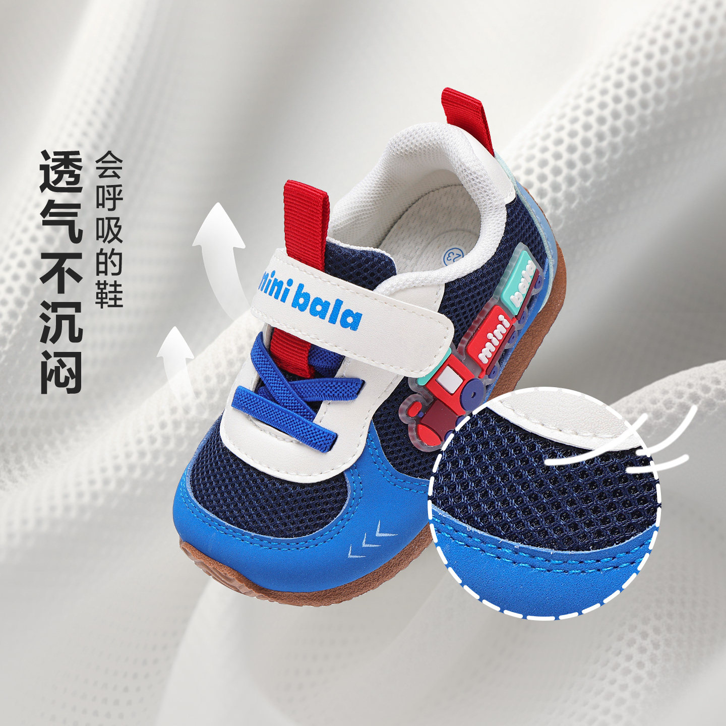 迷你巴拉春新款【小火车】宝宝学步鞋男女童德训鞋网面休闲运动鞋