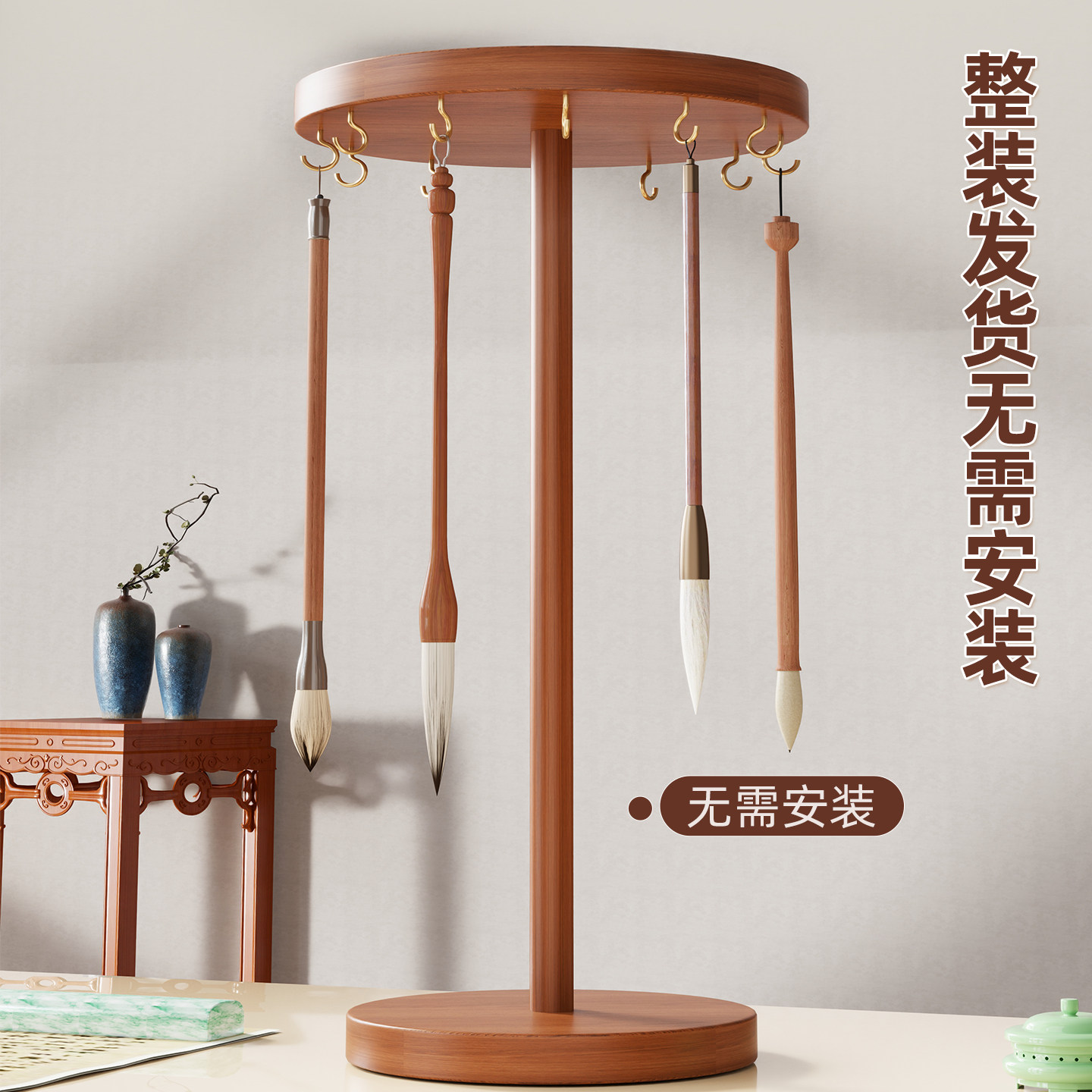 毛笔挂架置物架书法文房四宝摆件挂件复古笔搁笔架放笔神器桌面展示架多功能实木陈列架子书法专用文具收纳架