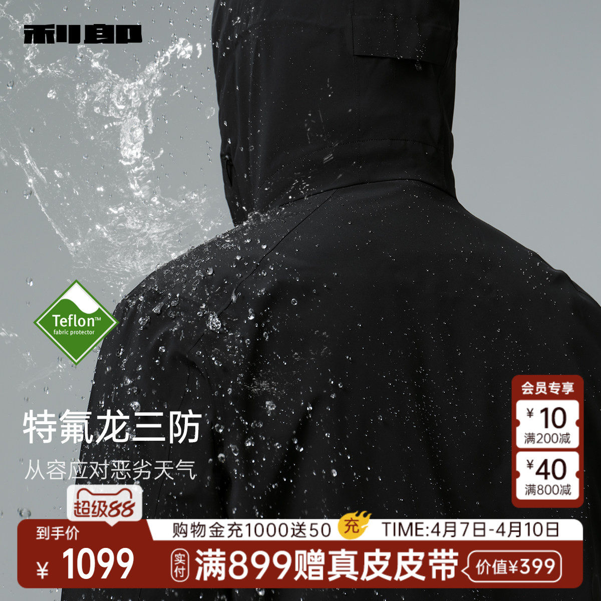 【一衣三穿】利郎官方 三防轻薄羽绒服男士连帽冬季保暖外套