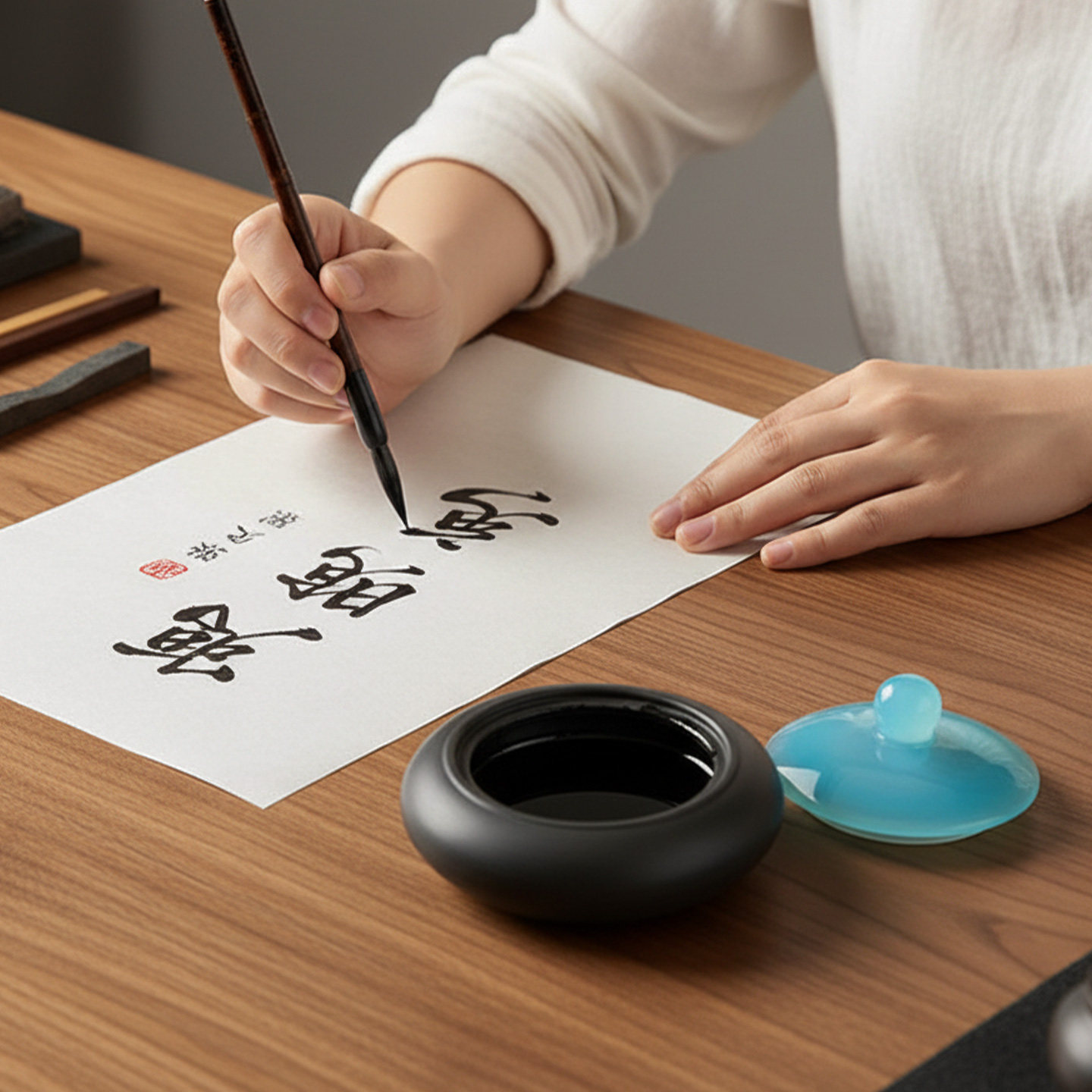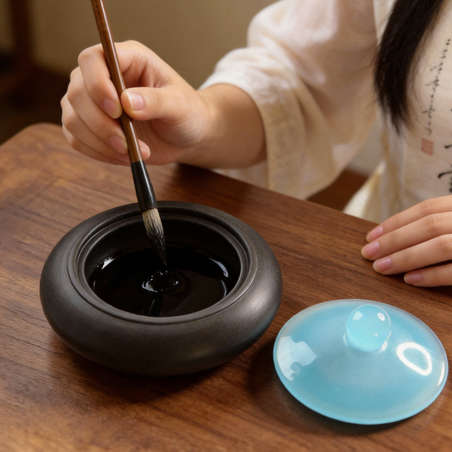 赵北砚台女士专用小号圆砚台书法小楷砚台带盖保湿不干墨砚池文房四宝书桌国学摆件墨砚随身便携小墨海墨盒