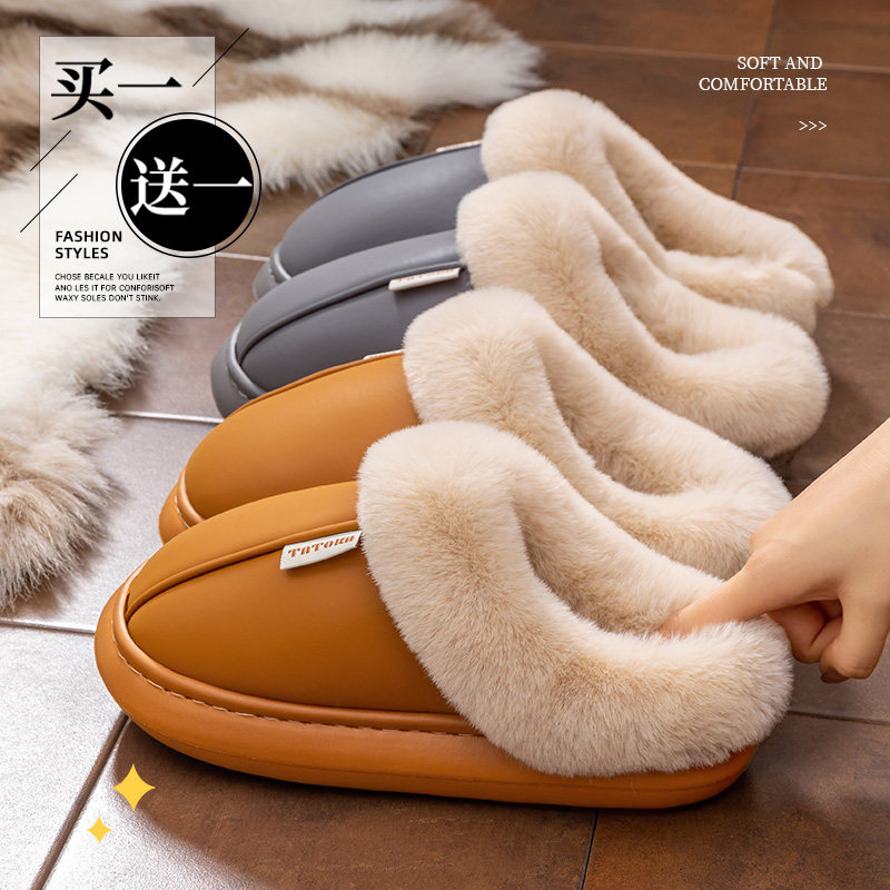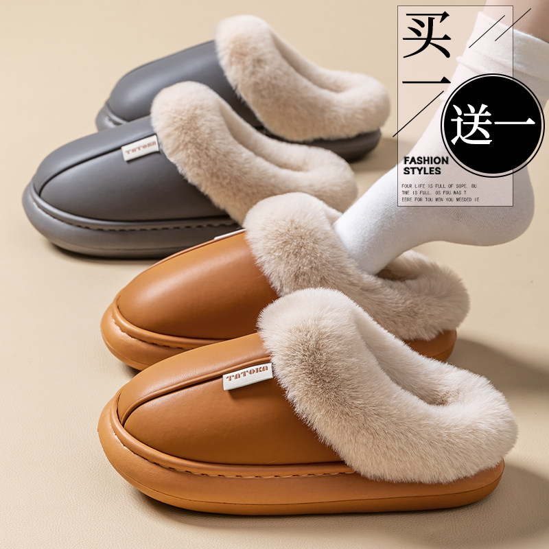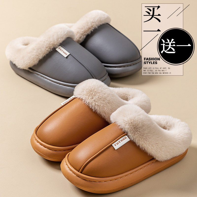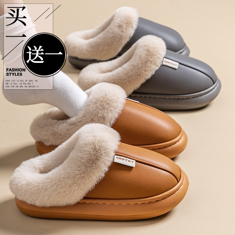 买一送一女士秋冬季棉拖鞋防滑防水静音厚底家居家情侣加绒棉鞋男