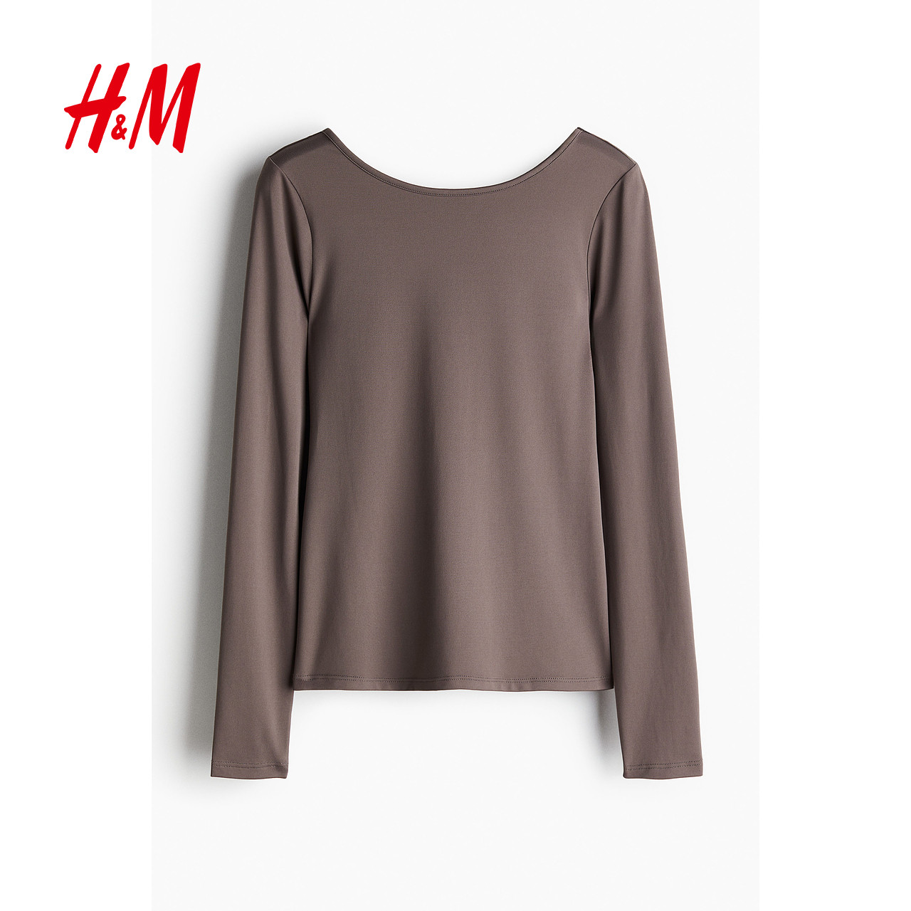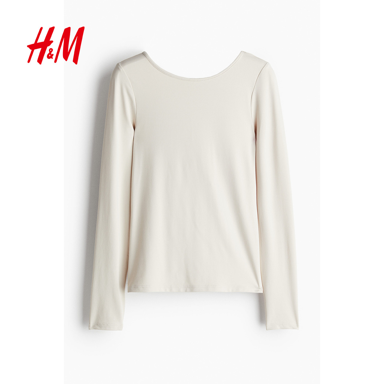HM女装T恤时尚低露背汤勺领休闲上衣修身内搭长袖打底衫1243657