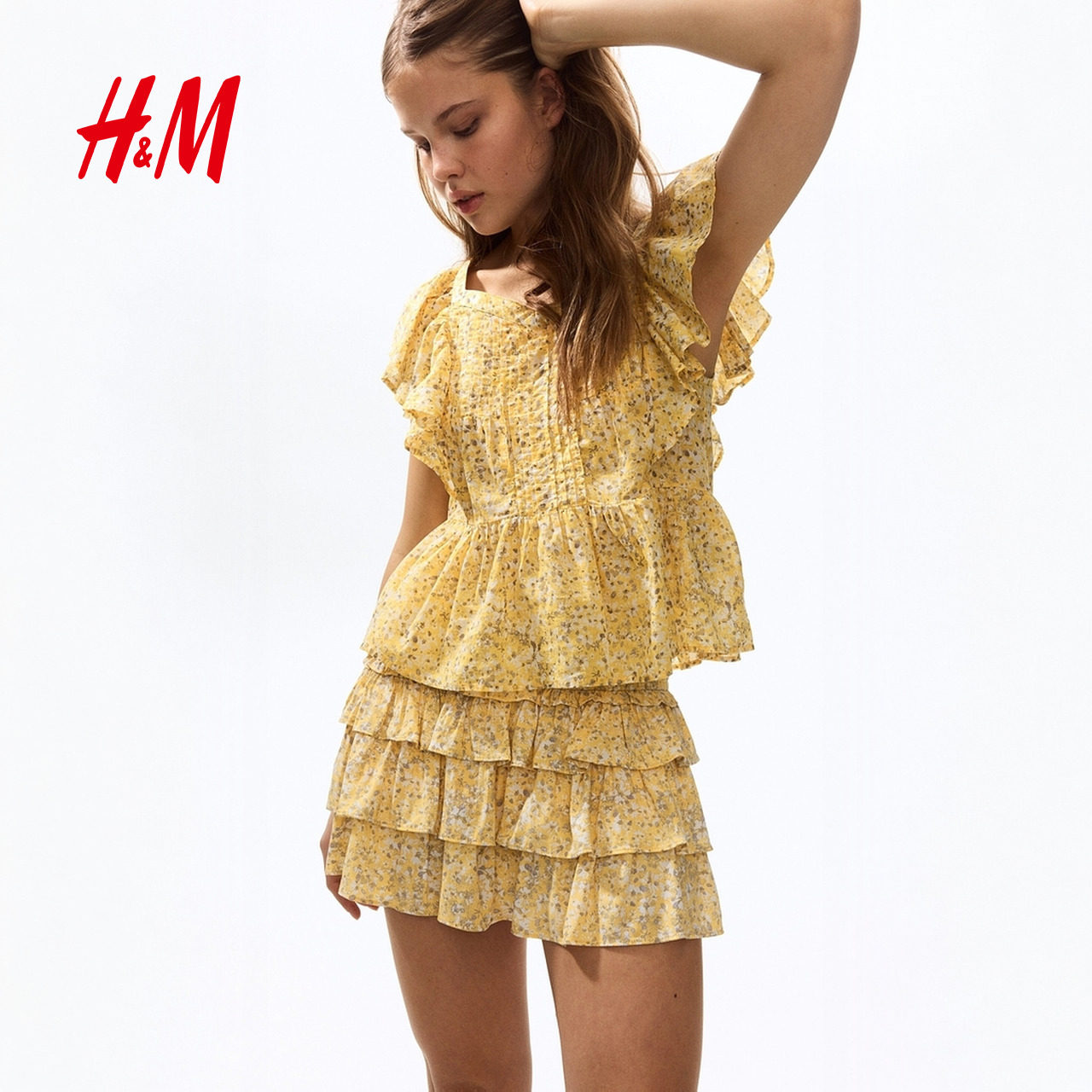 HM2026春季新款女装粘纤层叠迷你短裙裤1314358