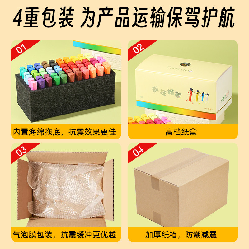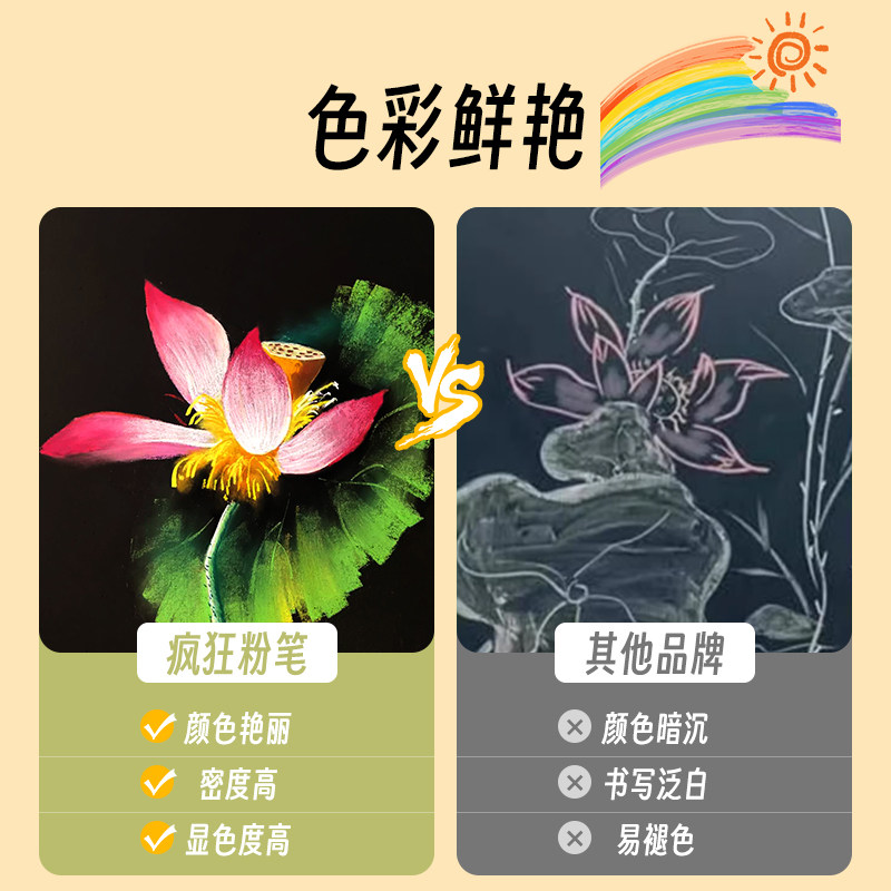 疯狂粉笔彩色黑板报专用颜色鲜艳显色无尘无毒儿童绘画教学教师专用非水溶性白色多色家用32色批发小蛋糕六角