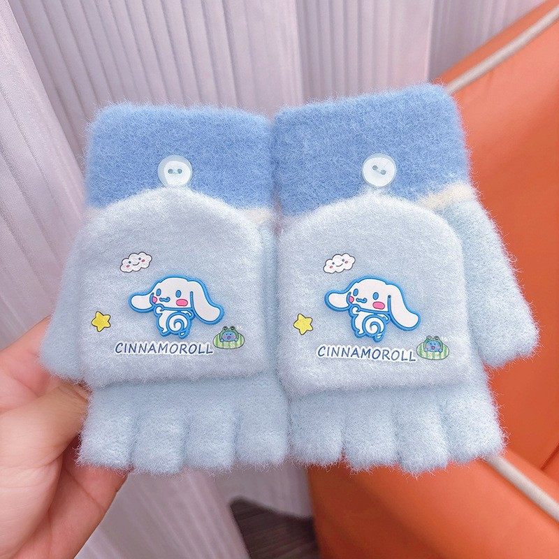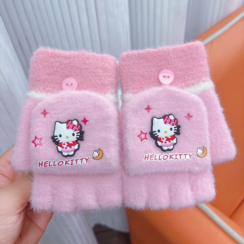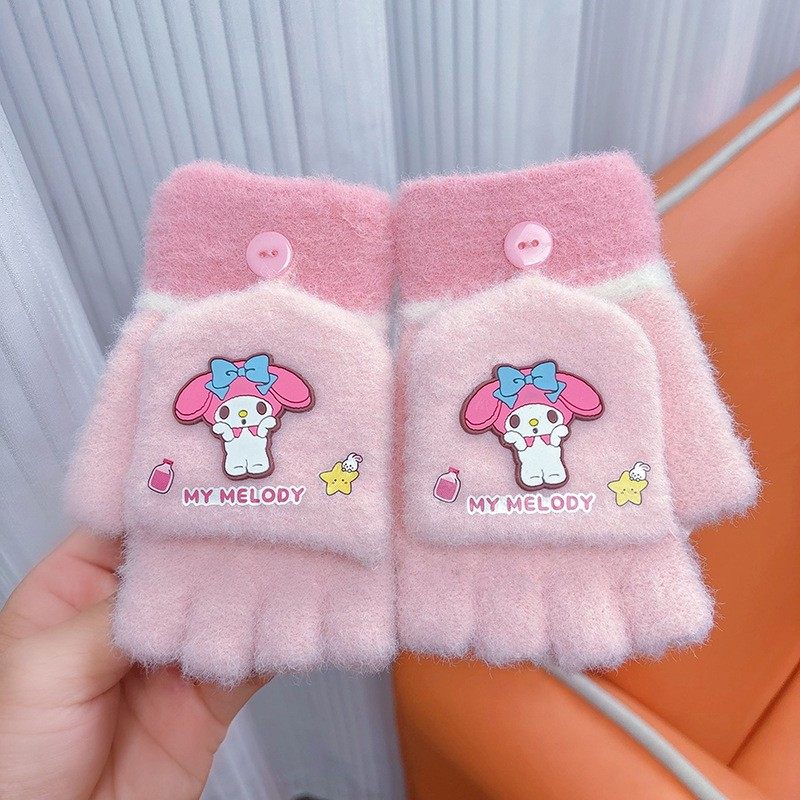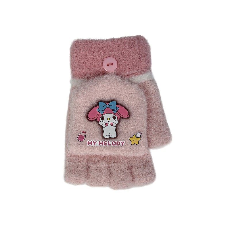 库洛米儿童手套冬季新款男女小孩可爱卡通半分指翻盖学生防寒保暖