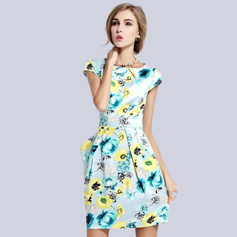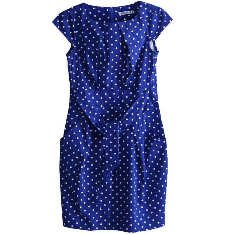 欧美大码女装高端欧货蓝色波点有口袋的连衣裙子直筒夏季2025新款