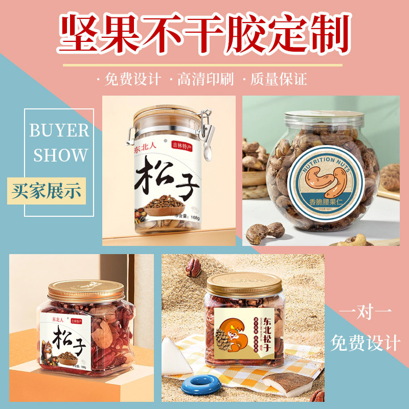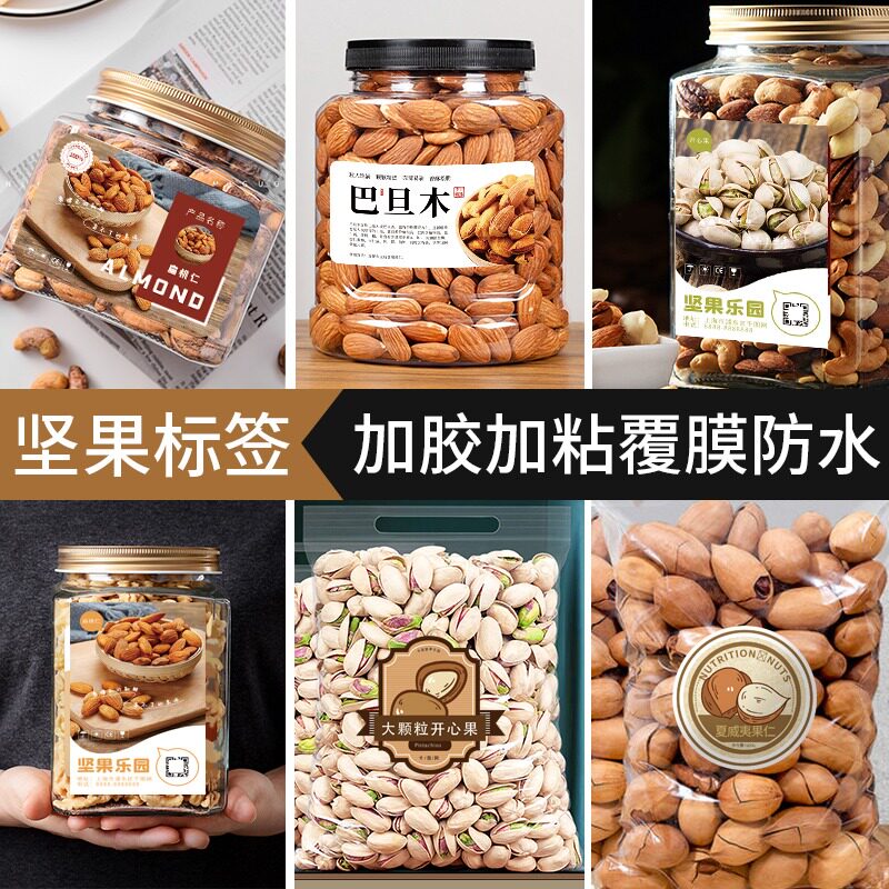 定制坚果贴纸包装袋标签夏威夷果碧根果核桃开心果巴旦木瓜子杏仁松子榛子腰果花生罐装瓶身不干胶印刷定订做