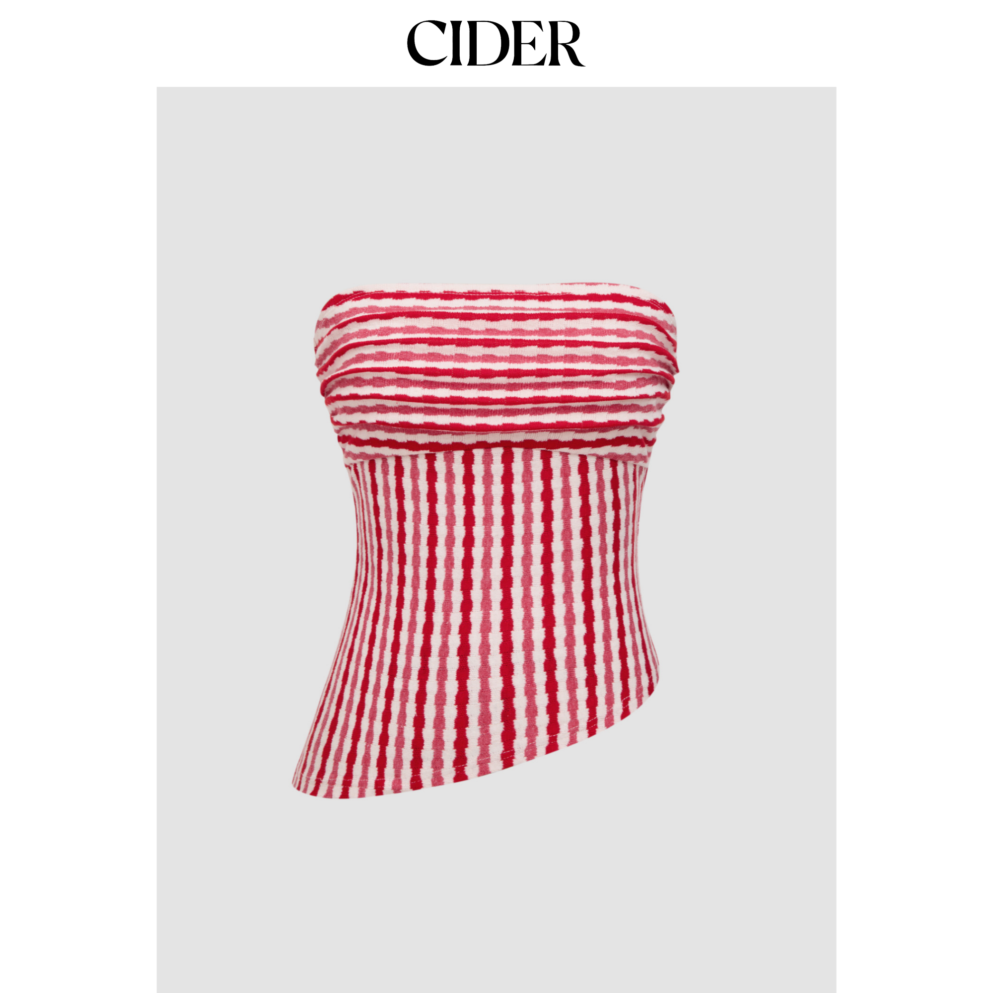 CIDER 夏季新品女装棉条纹不对称下摆抹胸上衣114646597