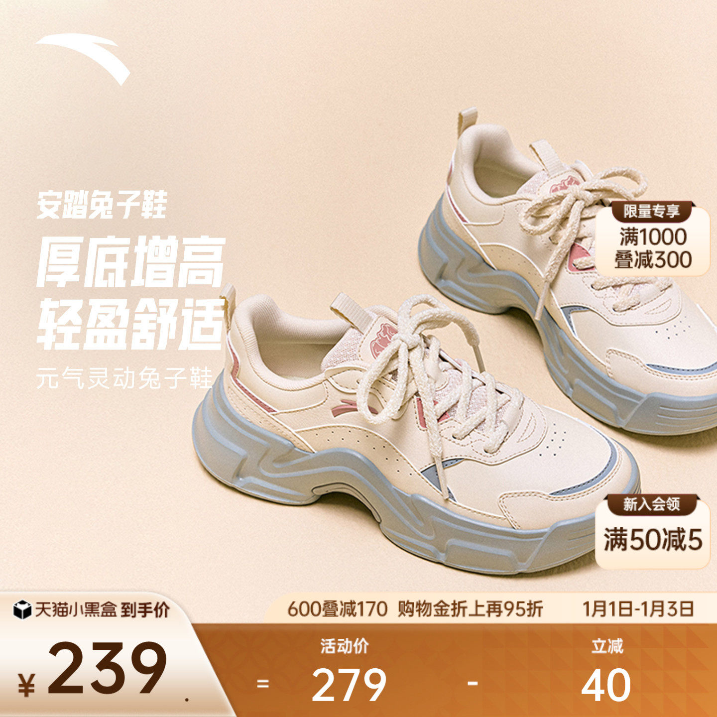 安踏兔子鞋丨皮面休闲鞋冬季新款女子潮流百搭软底舒适低帮运动鞋