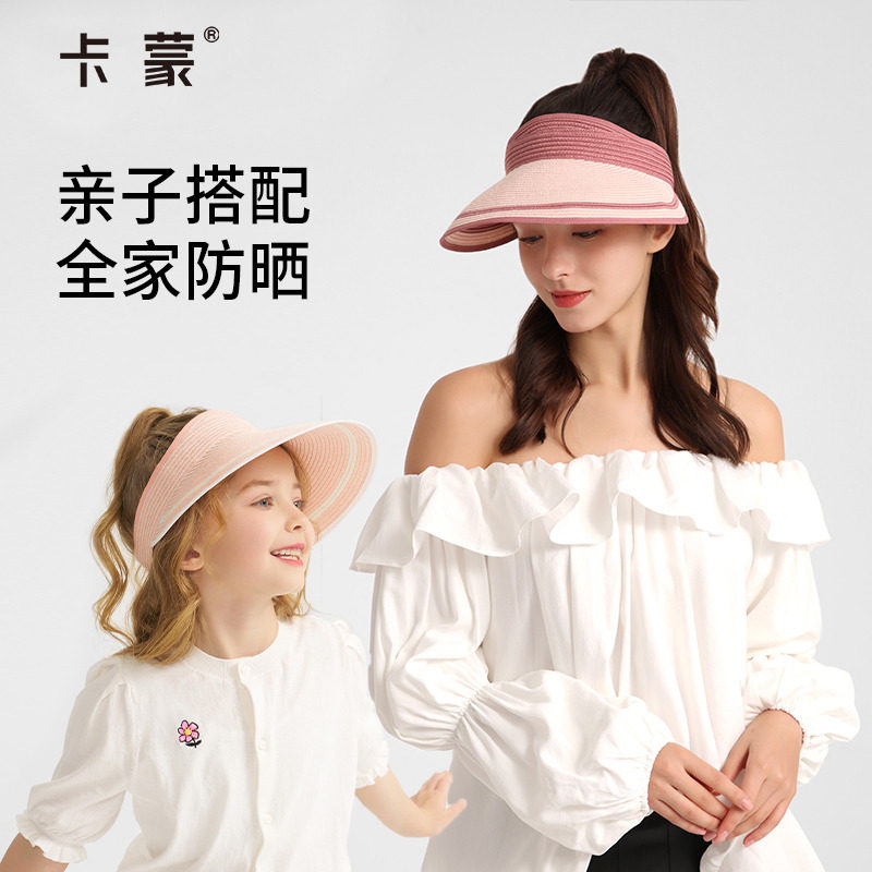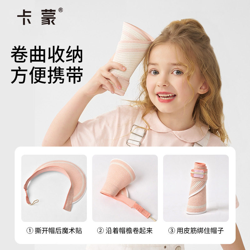 卡蒙儿童防晒帽可折叠空顶草帽女出游户外防紫外线蛋卷遮阳帽新款