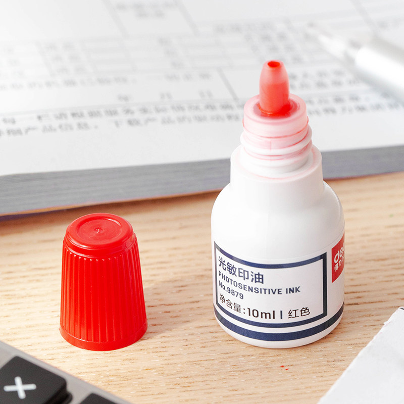 得力9879光敏印油刻章印章油墨印油10ml印台印泥印章油红色包邮