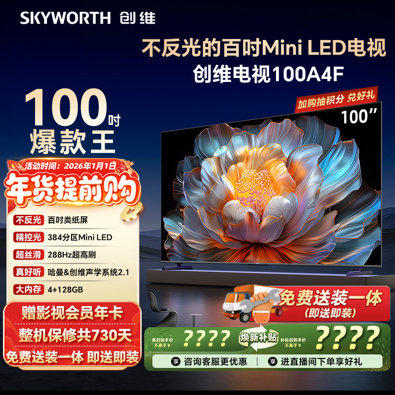创维电视100A4F 100英寸Mini LED液晶电视机以旧换新补贴官方旗舰