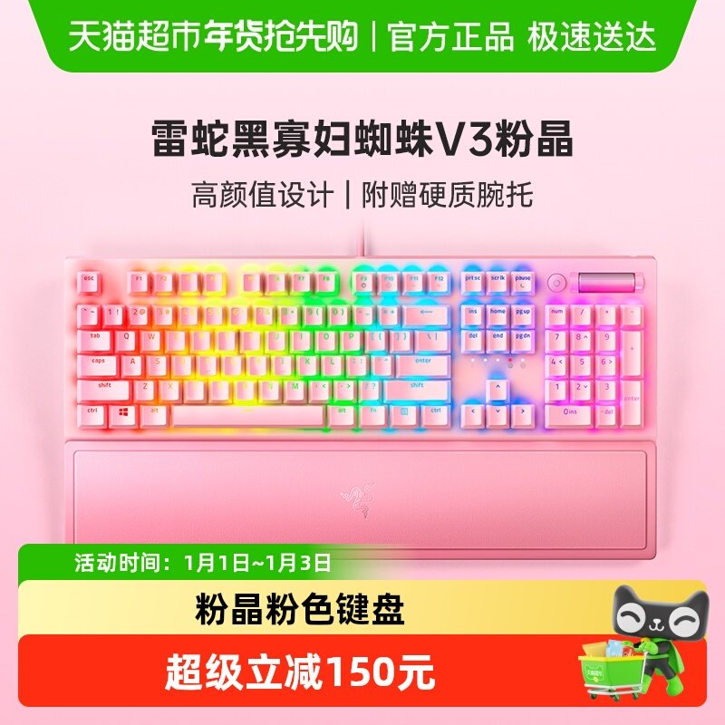 =Razer雷蛇黑寡妇蜘蛛V3粉晶粉色游戏有线电脑游戏机械键盘