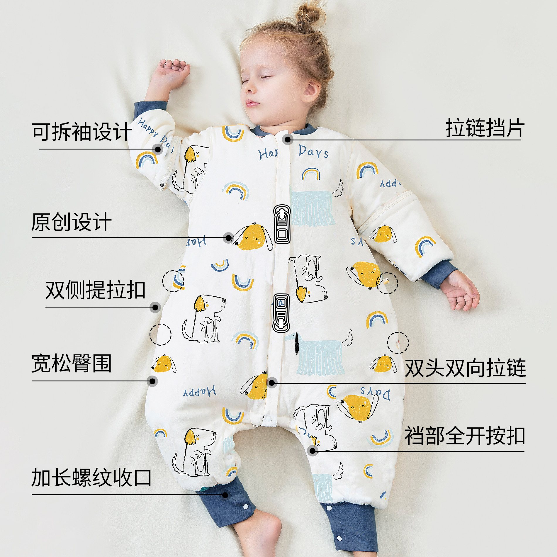 BeBeBus婴儿睡袋春秋儿童恒温分腿连体睡衣宝宝四季秋冬睡袋