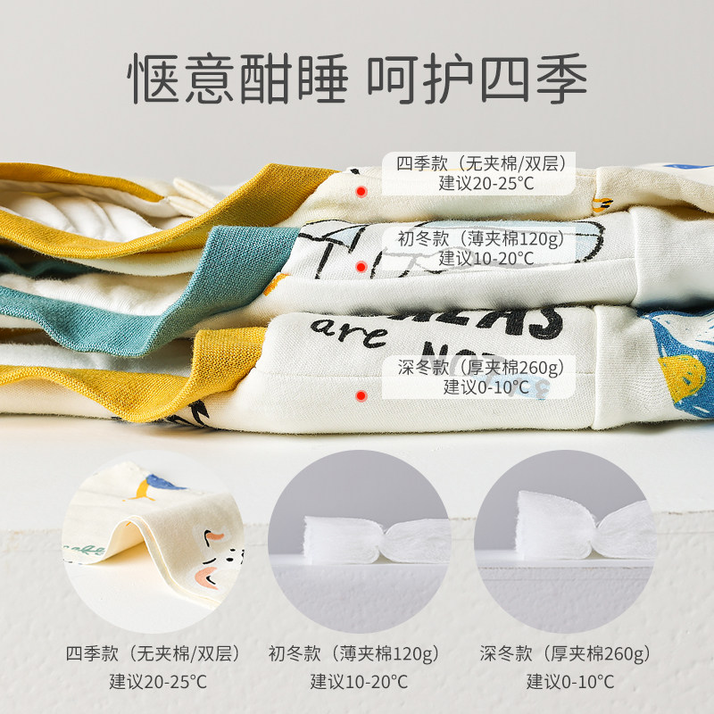 小魔箭婴儿恒温睡袋宝宝蚕丝防踢被秋冬款加厚新生儿一体四季通用