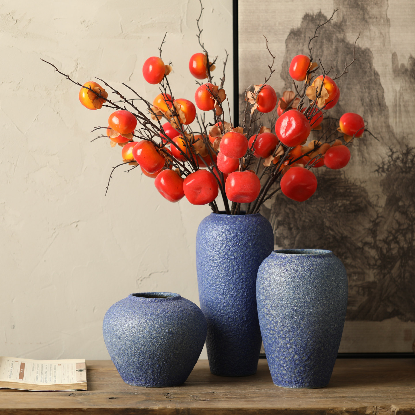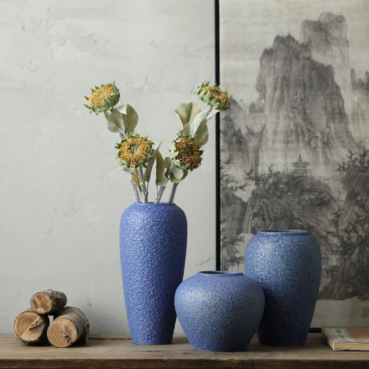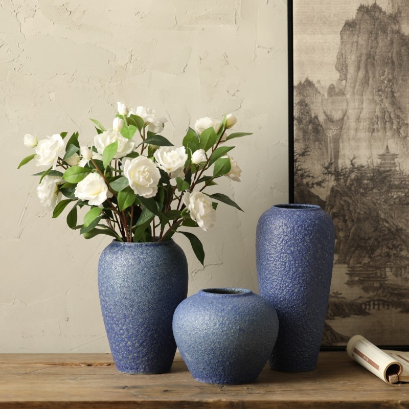景德镇新中式陶瓷花瓶复古怀旧粗陶罐高级花器客厅台面装饰品摆件
