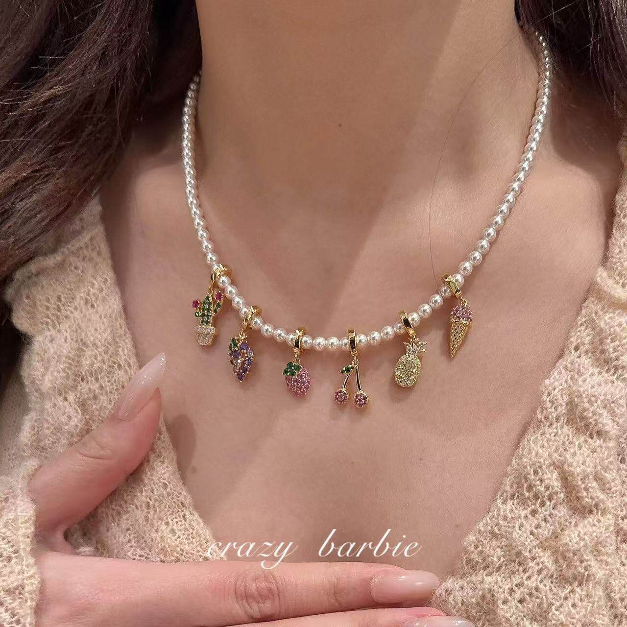 【夏日缤果】吊坠彩色水果闪钻项链设计感颈链锁骨链毛衣链新2026